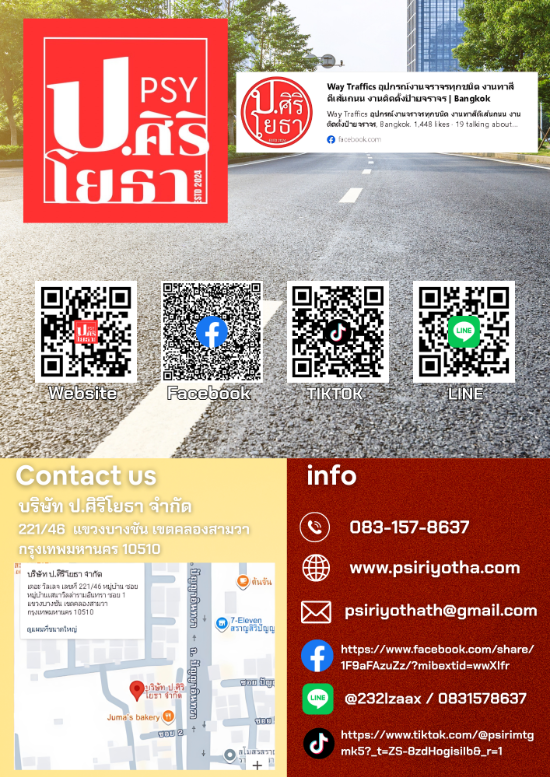 บริษัท ป.ศิริโยธา จำกัด ให้บริการงานจราจรครบวงจร ด้วยสินค้าและบริการที่ได้มาตรฐาน เพื่อสร้างความปลอดภัย